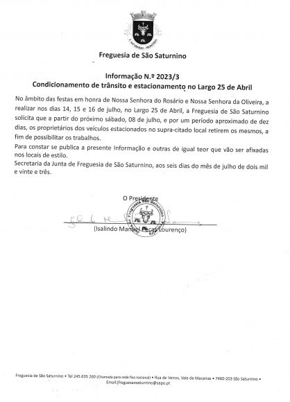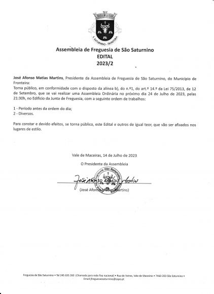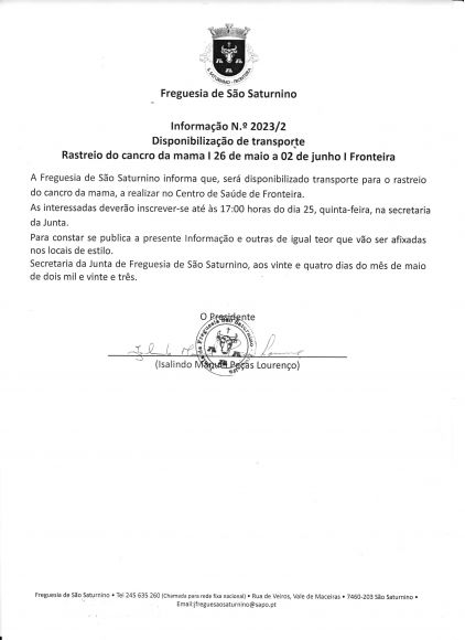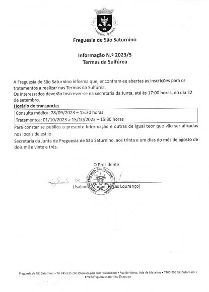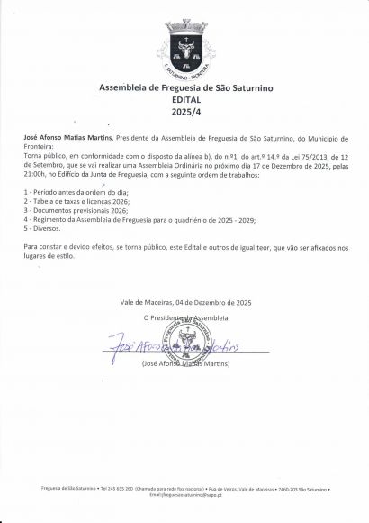 © 2026 Junta de Freguesia de São Saturnino. Todos os direitos reservados | Termos e Condições | * Chamada para a rede fixa nacional.