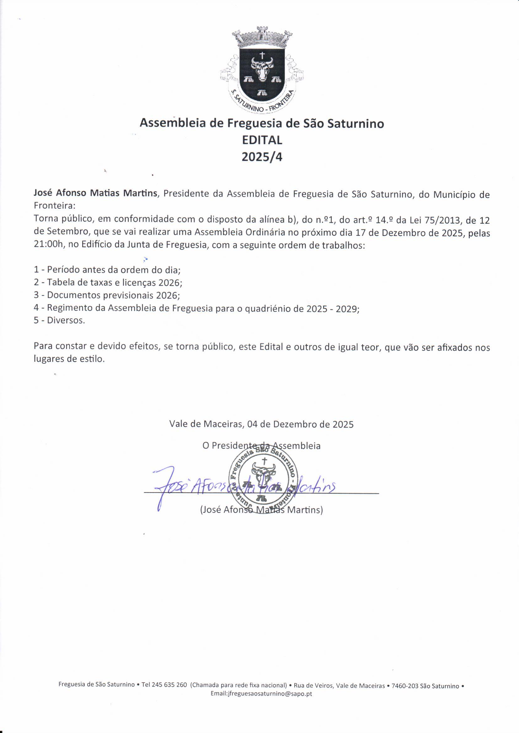 © 2025 Junta de Freguesia de São Saturnino. Todos os direitos reservados | Termos e Condições | * Chamada para a rede fixa nacional.